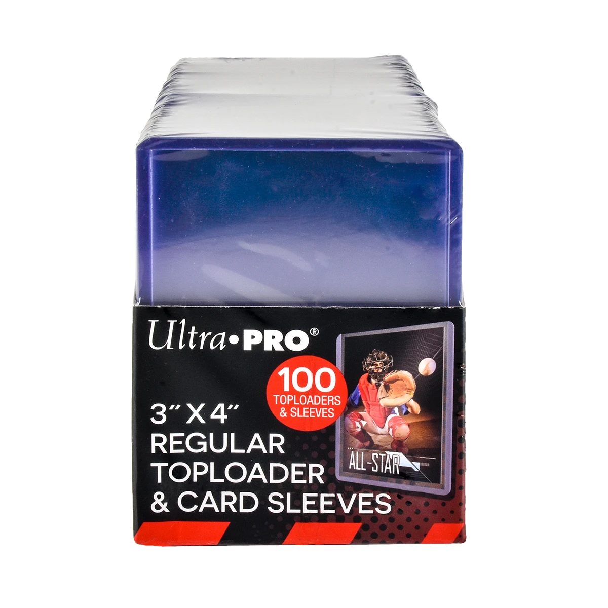 Ultra PRO’s Toploaders are rigid plastic protectors made with super clear PVC to keep your cards safe for storage, display, during trade, and in shipments. With outer dimensions of 3″ x 4″, these Toploaders are designed to safely store standard size cards (2-1/2″ x 3-1/2″) up to 35 points in thickness.