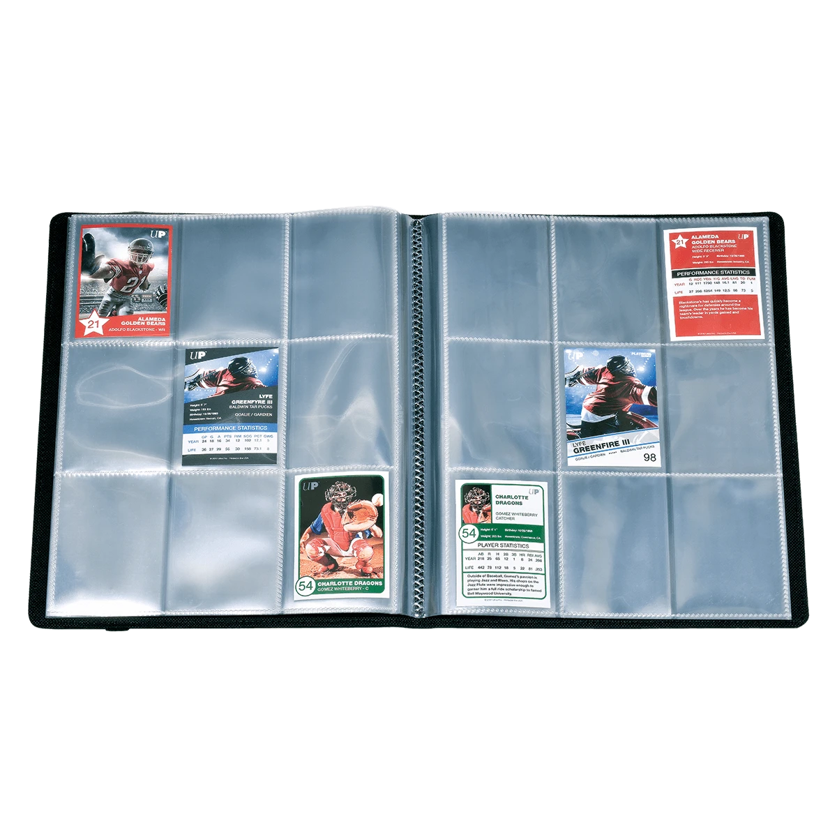 The Sports Premium PRO-Binders are ideal for keeping your sports card collection organized and safe. They feature clear archival-safe 9-pocket pages with side loading pockets to keep cards clean and in place and an elastic strap for secure keeping. The album has 20 pages that hold up to 180 standard-size cards allowing you to easily view the front and back of your cards. This Sports Premium PRO-Binder features an executive style leatherette look in black. The front cover has a stylish “Collectors Album” logo debossed on the front. Elastic strap that holds the album shut when not in use. (cards not included)