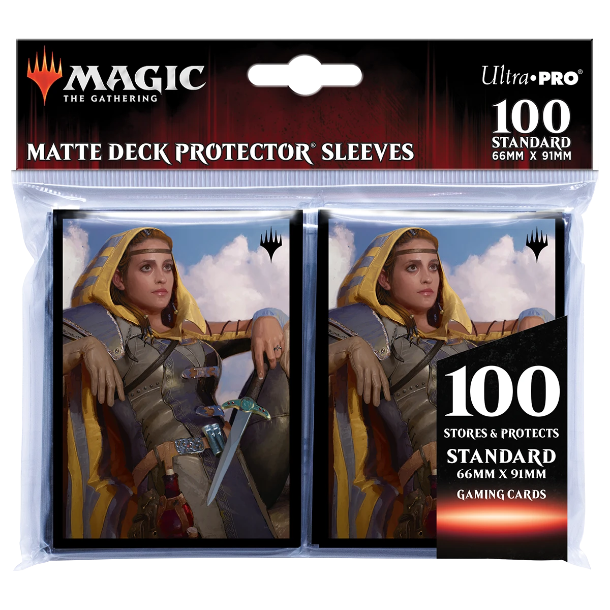The 100ct Deck Protector® sleeves for Magic: The Gathering feature full-color artwork of Nalia de’Arnise by John Stanko, and are made with our proprietary ChromaFusion Technology™ to prevent peeling. Archival-safe polypropylene materials ensure you can sleeve your cards with confidence. Sized for standard size trading cards measuring 2.5 in. x 3.5 in. The matte finish offers a glare-free, camera ready play experience!