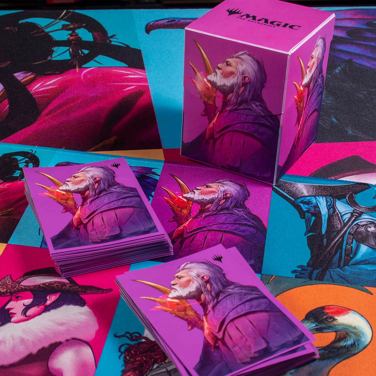 The 100ct Deck Protector® sleeves for Magic: The Gathering feature full-color artwork and are made with our proprietary ChromaFusion Technology™ to prevent peeling. Archival-safe polypropylene materials ensure you can sleeve your cards with confidence. Sized for standard size trading cards measuring 2.5 in. x 3.5 in. The matte finish offers a glare-free, camera ready play experience!