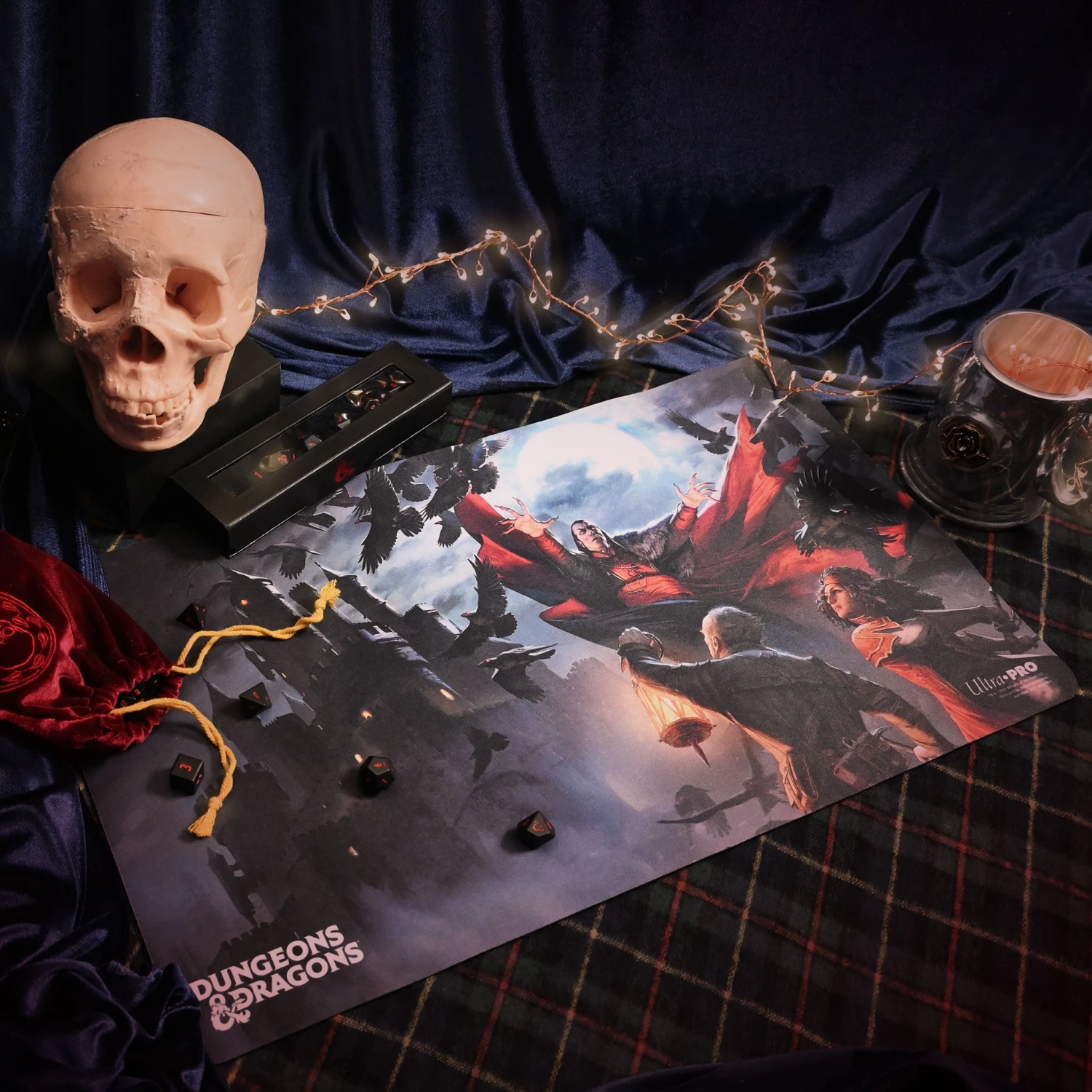 Bring your favorite adventures to the table with the Cover Series Playmats for Dungeons & Dragons featuring Van Richten’s Guide to Ravenloft. Made with a soft fabric top and rubber backing, not only with your cards, miniatures, or specialty dice be protected, but also the table below when rolling dice. With dimensions of approximately 24 in. x 13.5 in., this playmat is also the perfect decorative oversized mouse pad for your home or office. Non-slip rubber backing lets the playmat lay flat and prevents it from shifting during use.