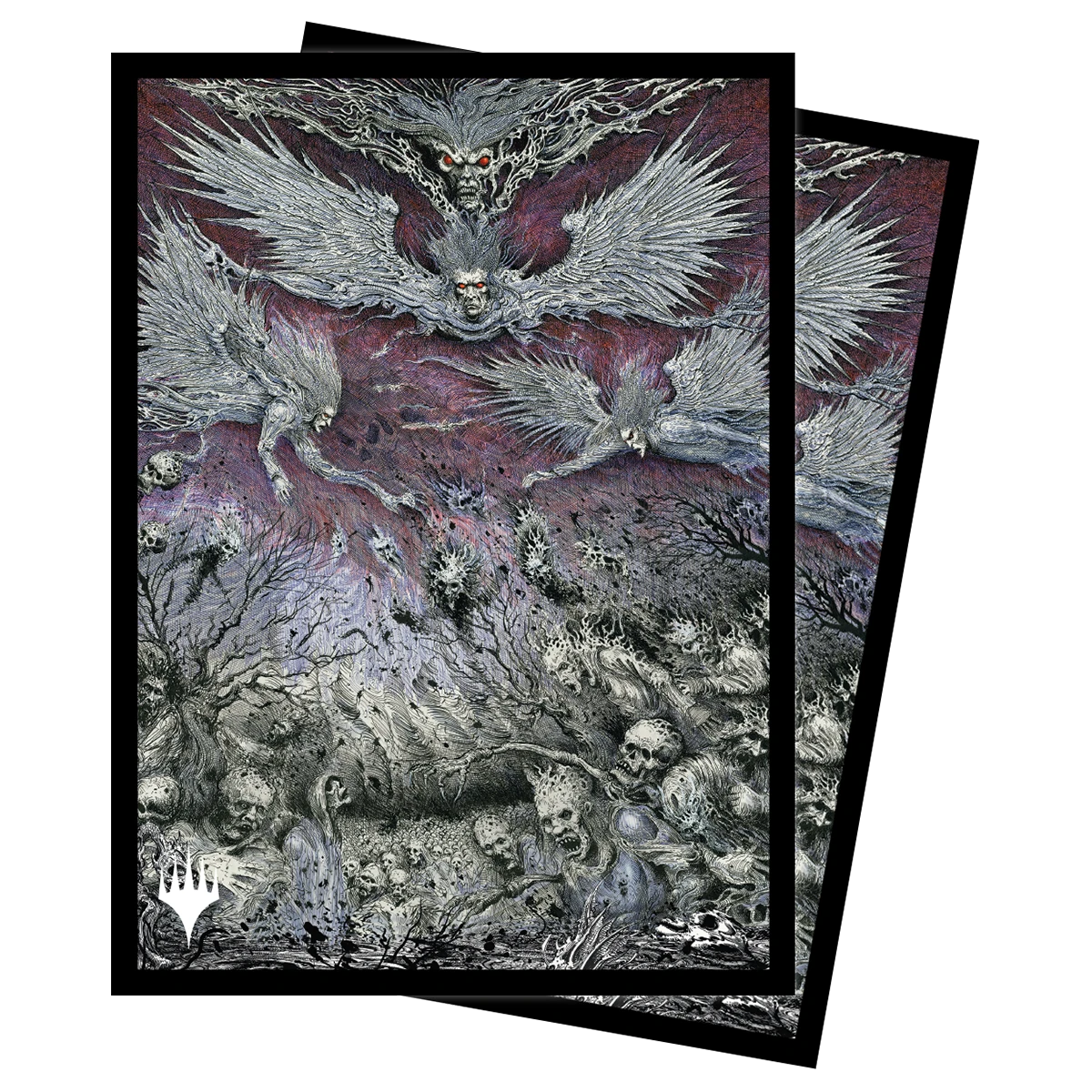 The 100ct Deck Protector® sleeves for Magic: The Gathering feature full-color artwork of Damnation by Ian Miller, and are made with our proprietary ChromaFusion Technology™ to prevent peeling. Archival-safe polypropylene materials ensure you can sleeve your cards with confidence. Sized for standard size trading cards measuring 2.5 in. x 3.5 in. The matte finish offers a glare-free, camera ready play experience!