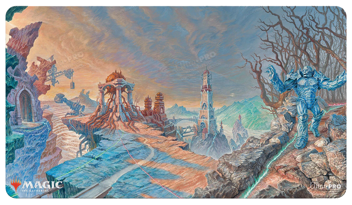 Up your game at your next game night with these official Magic: The Gathering playmats showcasing highly detailed and vibrant artwork of Urza from popular trading card game. Made with a premium fabric top to prevent damage to cards during game play for tabletop gamers. With dimensions of approximately 24″ X 13-1/2″, this playmat is also the perfect decorative over sized mouse pad for computer and laptop workstations. Non-slip rubber backing lets the playmat lay flat and prevents it from shifting during use.