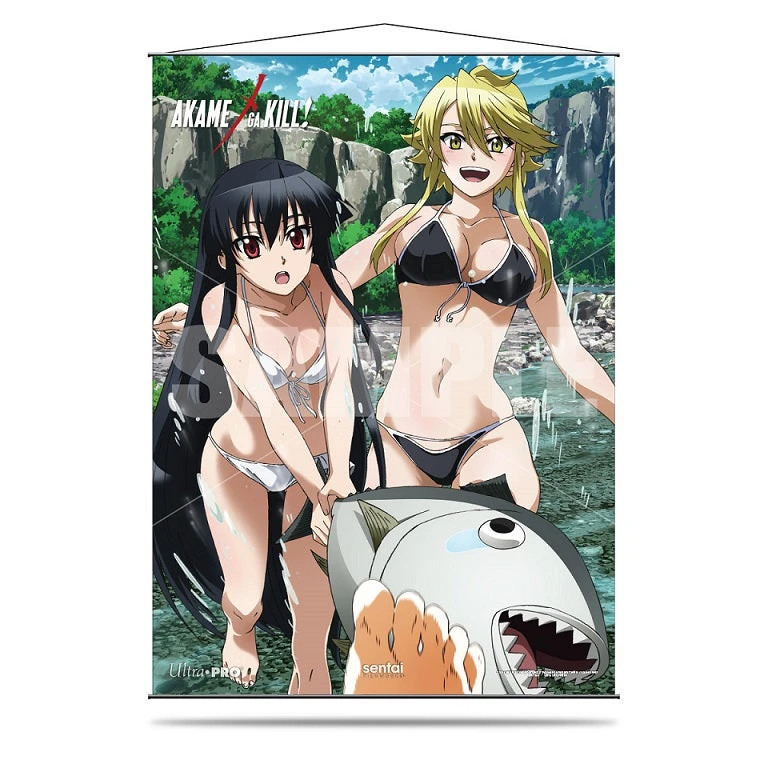 Even Night Raid knows when to relax. Make a splash and enjoy some summer fun with Akame and Leone! Bring them home with this officially licensed Akame Ga Kill! wall scroll made with premium, silky fabric, black rods & hanging cord, featuring the two key heroines from the hit anime series. Ultra PRO wall scrolls are made with the highest quality with vibrant print colors, high resolution details and soft, premium fabric with silky touch. Dimensions are approximately 26.8 x 37.4 in. This officially licensed product is made only by Ultra PRO International – authenticity can be verified by our “UP” logo imprint on the rod ends.