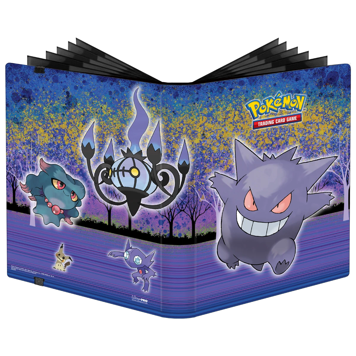 - Officially licensed Pokémon Trading Card Game 9-Pocket PRO-Binder, featuring Gengar, Chandelure, Misdreavus, Sableye, and Mimikyu