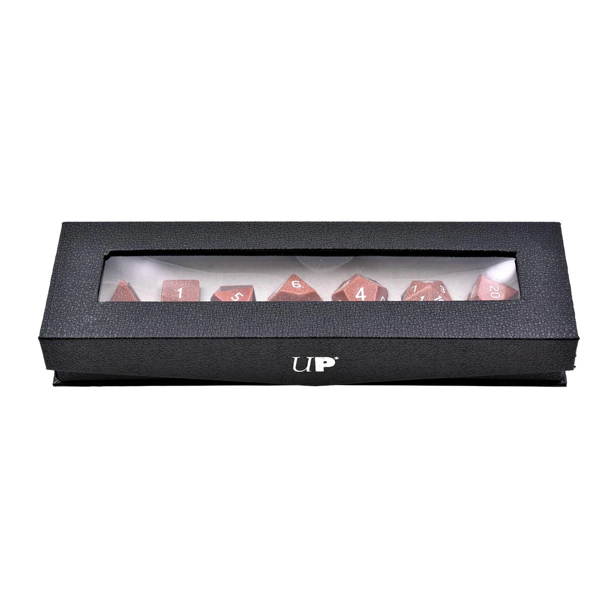 - High-end tabletop gaming 7-piece role-playing game dice set made from Gold Sandstone