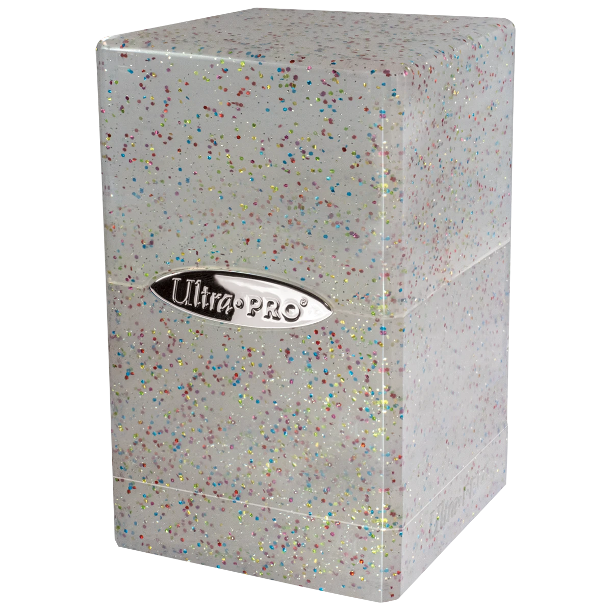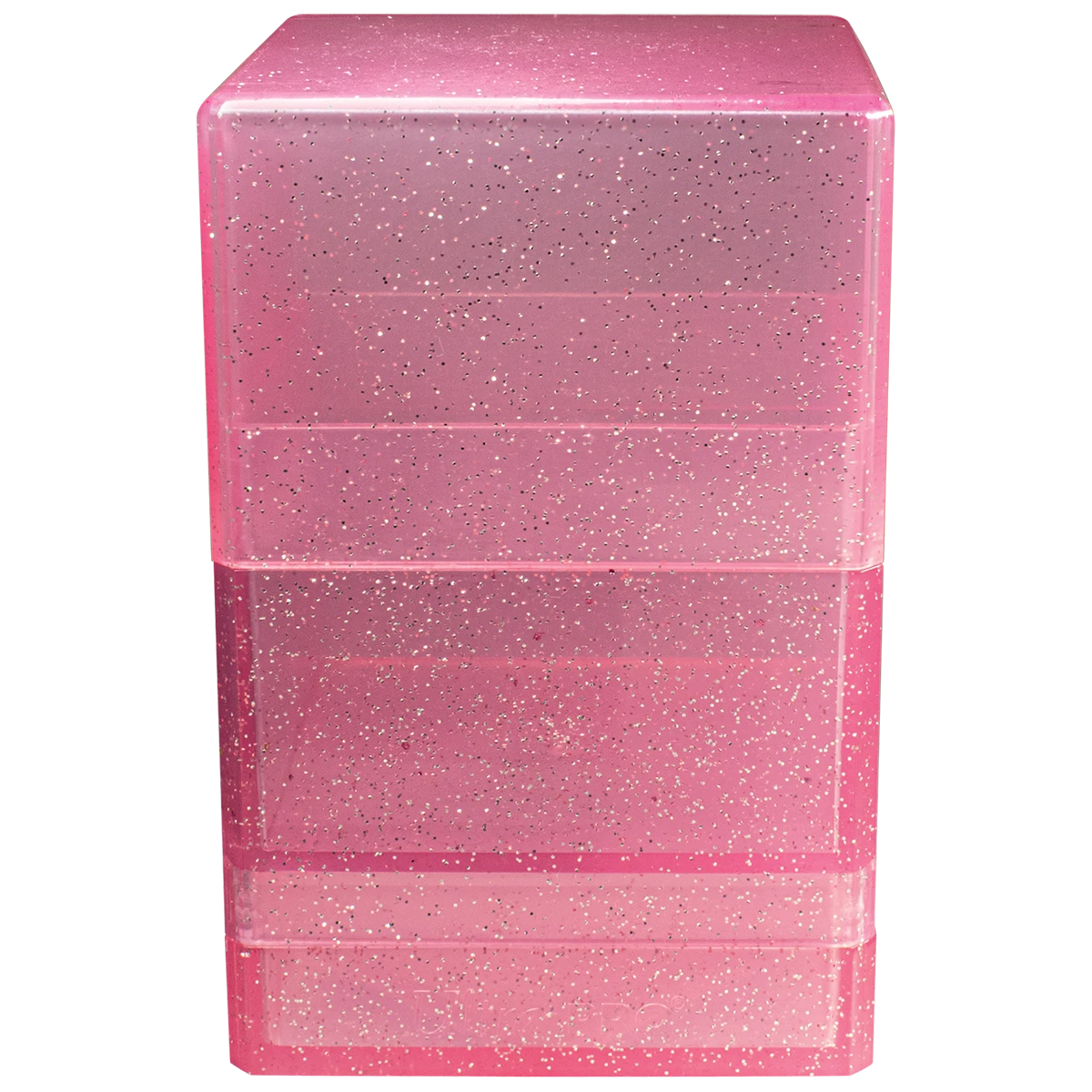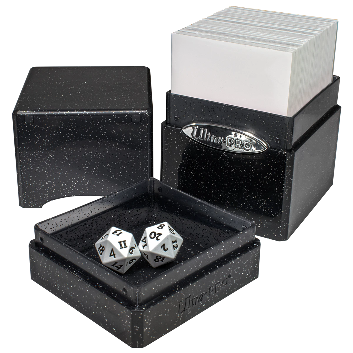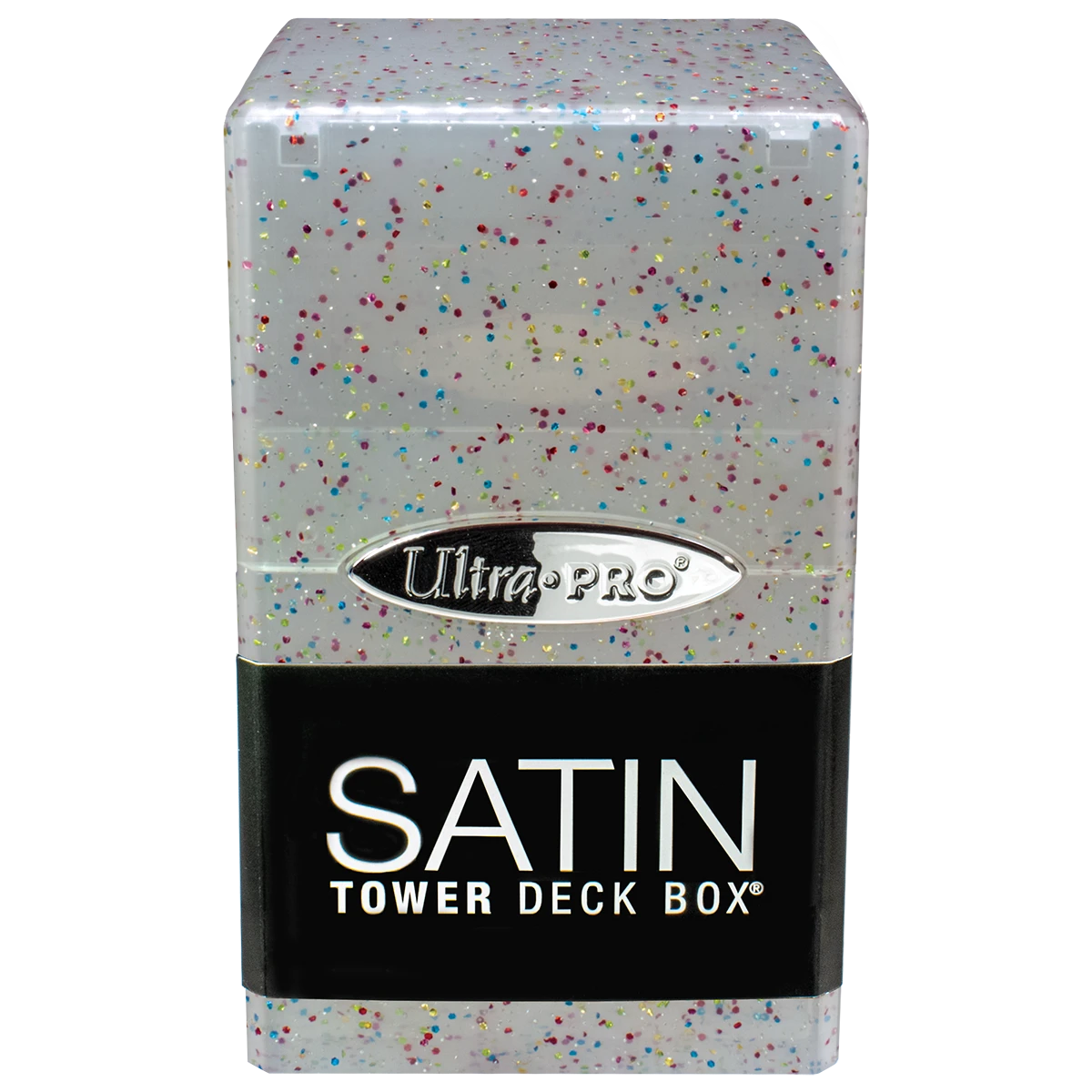 The Satin Tower is Ultra PRO’s best selling Deck Box®! The durable, injection molded plastic shell is designed to store and protect 100+ standard size trading cards in Ultra PRO Deck Protector® sleeves and includes a spacious bottom compartment for dice, coins, or life counters. The unique snap-fit locking mechanism keeps your valuable cards and components securely stored. This Satin Tower features a Glitter finish, but Satin Tower is also available with Hi-Gloss and Classic Satin finishes! Collect them all!