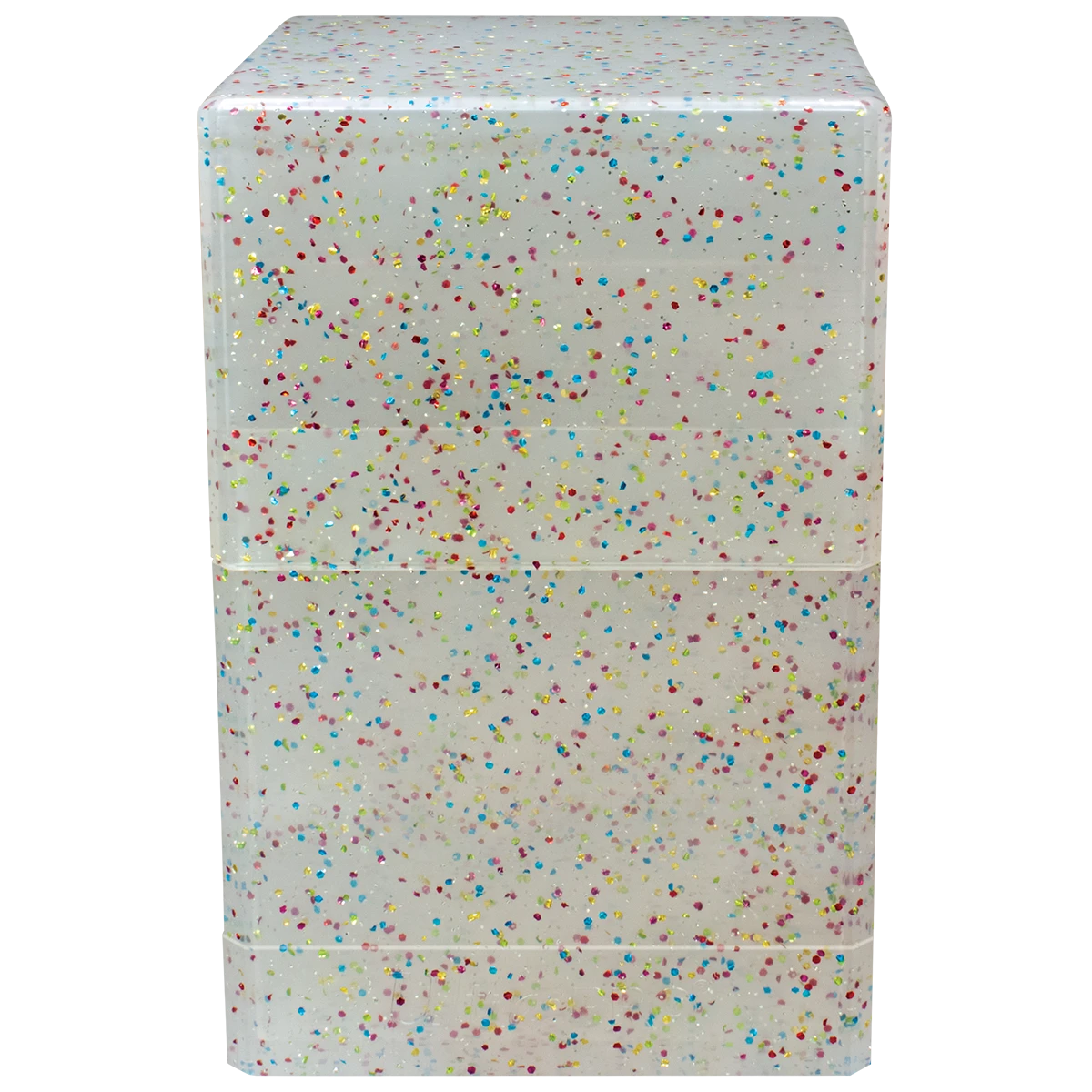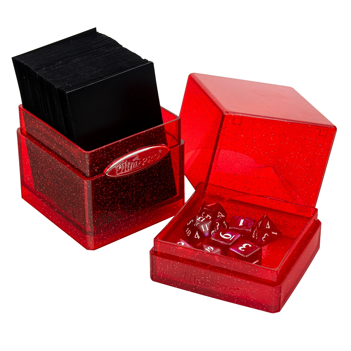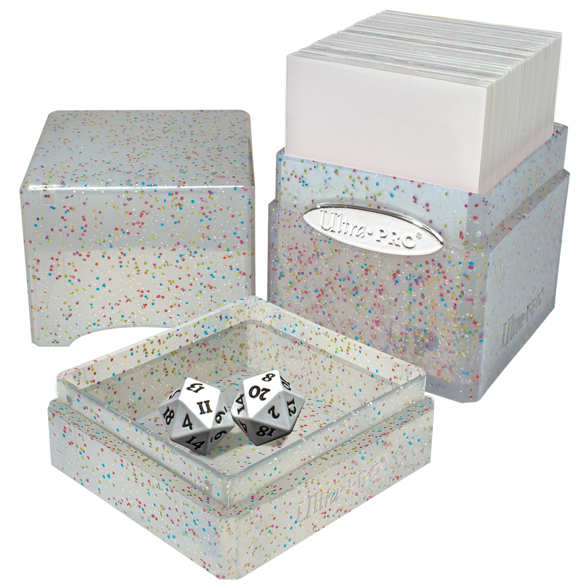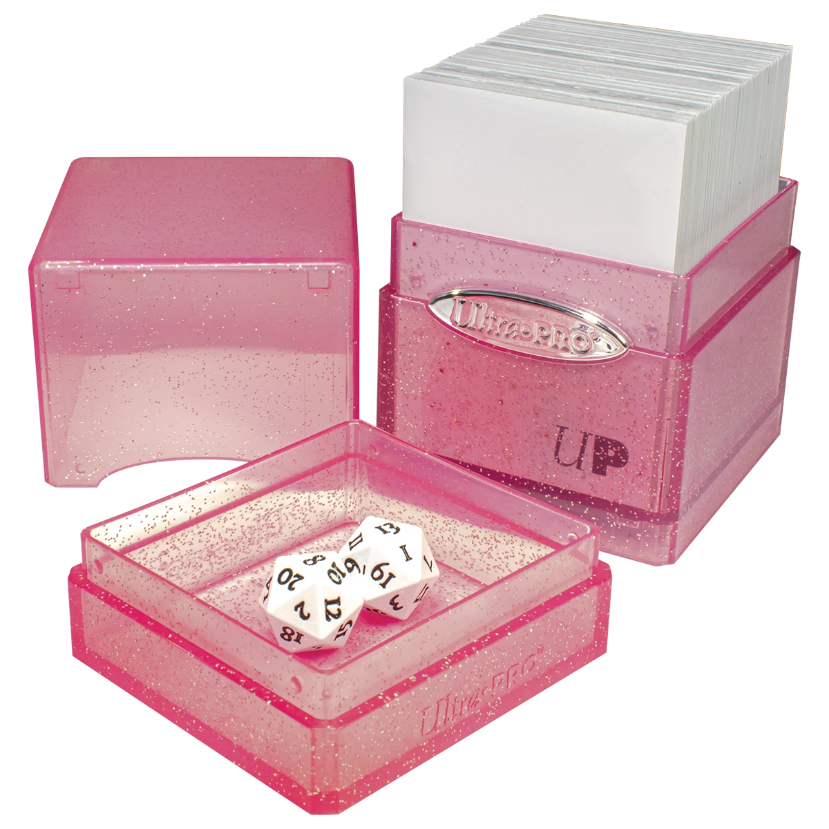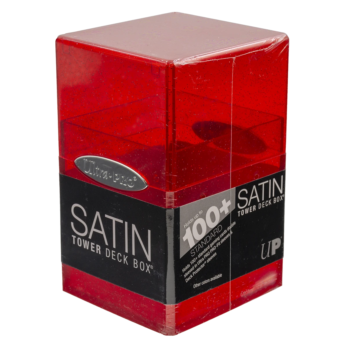 The Satin Tower is Ultra PRO’s best selling Deck Box®! The durable, injection molded plastic shell is designed to store and protect 100+ standard size trading cards in Ultra PRO Deck Protector® sleeves and includes a spacious bottom compartment for dice, coins, or life counters. The unique snap-fit locking mechanism keeps your valuable cards and components securely stored. This Satin Tower features a Glitter finish, but Satin Tower is also available with Hi-Gloss and Classic Satin finishes! Collect them all!