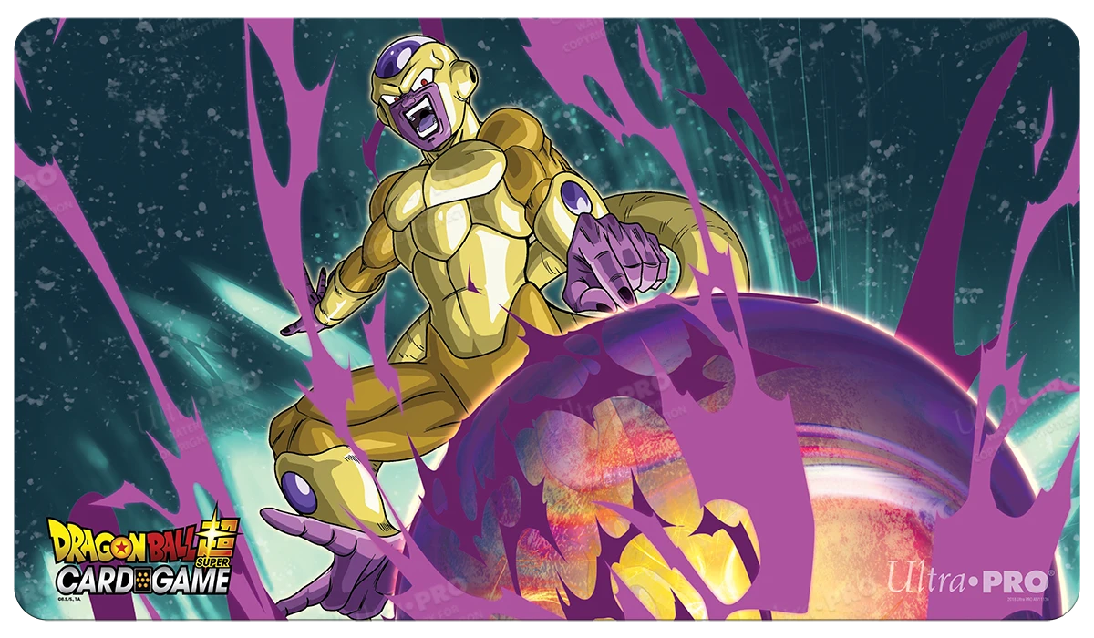 Harness the true power of a Super Saiyan with this official Dragon Ball Super playmat featuring Golden Frieza! Made with a premium fabric top to prevent damage to cards during game play for tabletop gamers. With dimensions of approximately 24″ X 13-1/2″, this playmat is also the perfect decorative over sized mouse pad for computer and laptop workstations. Non-slip rubber backing lets the playmat lay flat and prevents it from shifting during use. Perfect for use with the Dragon Ball Super Trading Card Game. Produced by Ultra PRO in partnership with BANDAI CO., LTD. This playmat comes with a bonus premium playmat tube and is made in California, USA