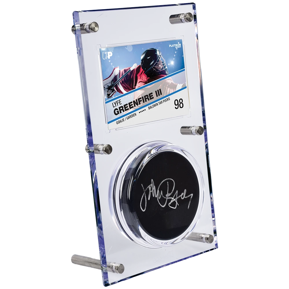 - Safely stores and displays 1 puck & 1 standard size trading card