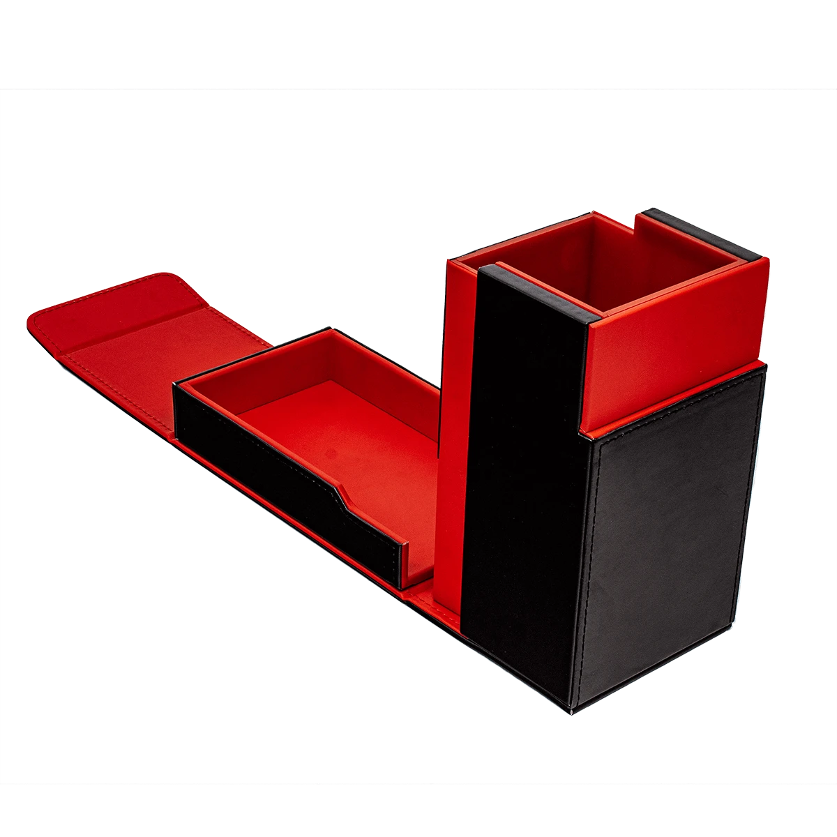 The Printed Leatherette Dice Tower for Dungeons & Dragons is the ultimate tabletop gamer’s companion. Equipped with a soft suede leatherette exterior and durable core, you can store and roll dice all in a single 3.75 in. x 3.35 in. x 5.90 in. space. The lid flips down to release dice into a walled dice catching tray. Drop dice through 3 injection molded ramps to ensure durability and randomized rolls. When you are done playing, you can flip up the attached tray to store 40+ standard sized RPG dice and secure the dice tower shut with the strong magnetic closure that Ultra PRO’s Alcove accessories are famous for. (Dice not included)