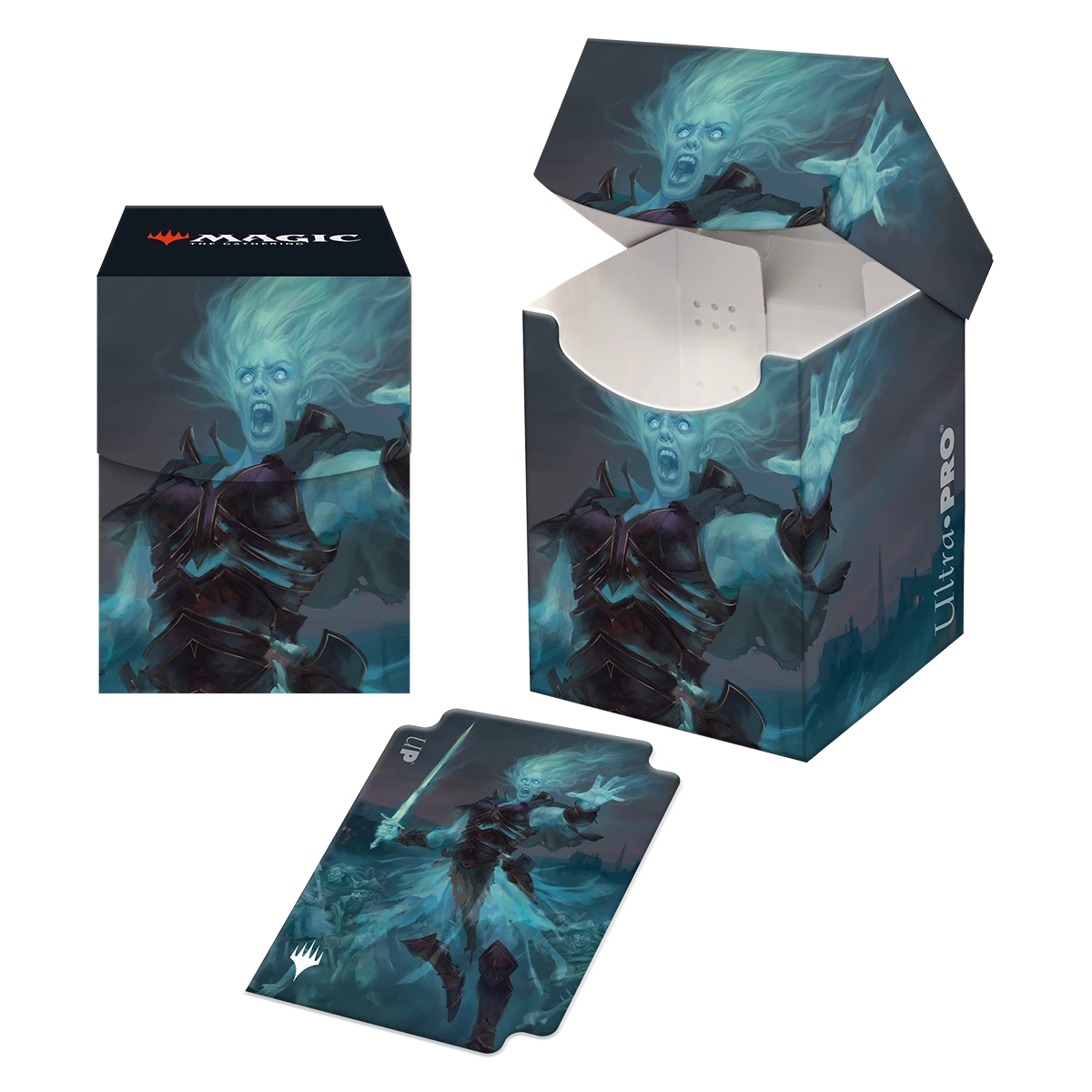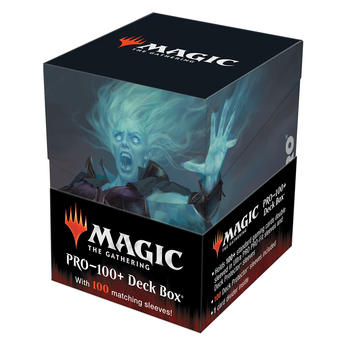 The Commander Combo Box includes 100 Deck Protector® sleeves, a 100+ Deck Box®, and a deck divider, all featuring Millicent, Restless Revenant matching artwork from Magic: The Gathering Innistrad Crimson Vow. The sleeves are made using proprietary ChromaFusion technology to minimize delamination, and the 100+ Deck Box and divider are made from a rigid polypropylene material. All materials are non-PVC and archival-safe to provide premium protection.