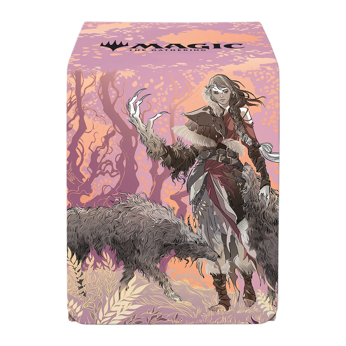 The Alcove Flip Deck Box for Magic: The Gathering features Arlinn, the Pack’s Hope on a vibrant, full-color leatherette finish. The strong magnetic closure, and dual thumb notches for easy to store and access to your deck. This deck box holds up to 100 standard size trading cards double-sleeved in Ultra PRO Deck Protector® sleeves.