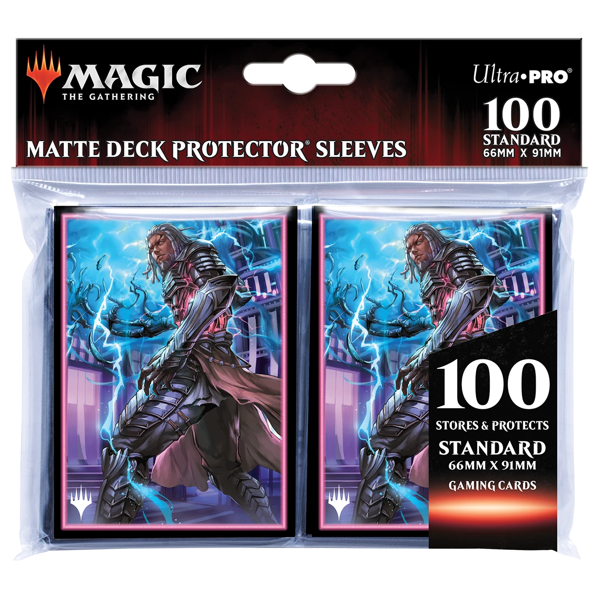 The 100ct Deck Protector® sleeves for Magic: The Gathering feature full-color artwork and are made with our proprietary ChromaFusion Technology™ to prevent peeling. Archival-safe polypropylene materials ensure you can sleeve your cards with confidence. Sized for standard size trading cards measuring 2.5 in. x 3.5 in. The matte finish on the front offers a glare-free, camera ready play experience, while the shiny back brings out the beautiful artwork!