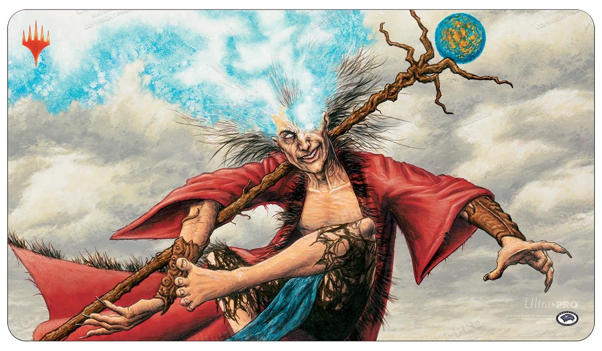 Up your game at your next game night with this official Magic: The Gathering playmat showcasing highly detailed and vibrant artwork of Zur the Enchanter from Legendary Collection. Made with a premium fabric top to prevent damage to cards during gameplay for tabletop gamers. With dimensions of approximately 24″ X 13-1/2″, this playmat is also the perfect decorative oversized mouse pad for computer and laptop workstations. Non-slip rubber backing lets the playmat lay flat and prevents it from shifting during use.