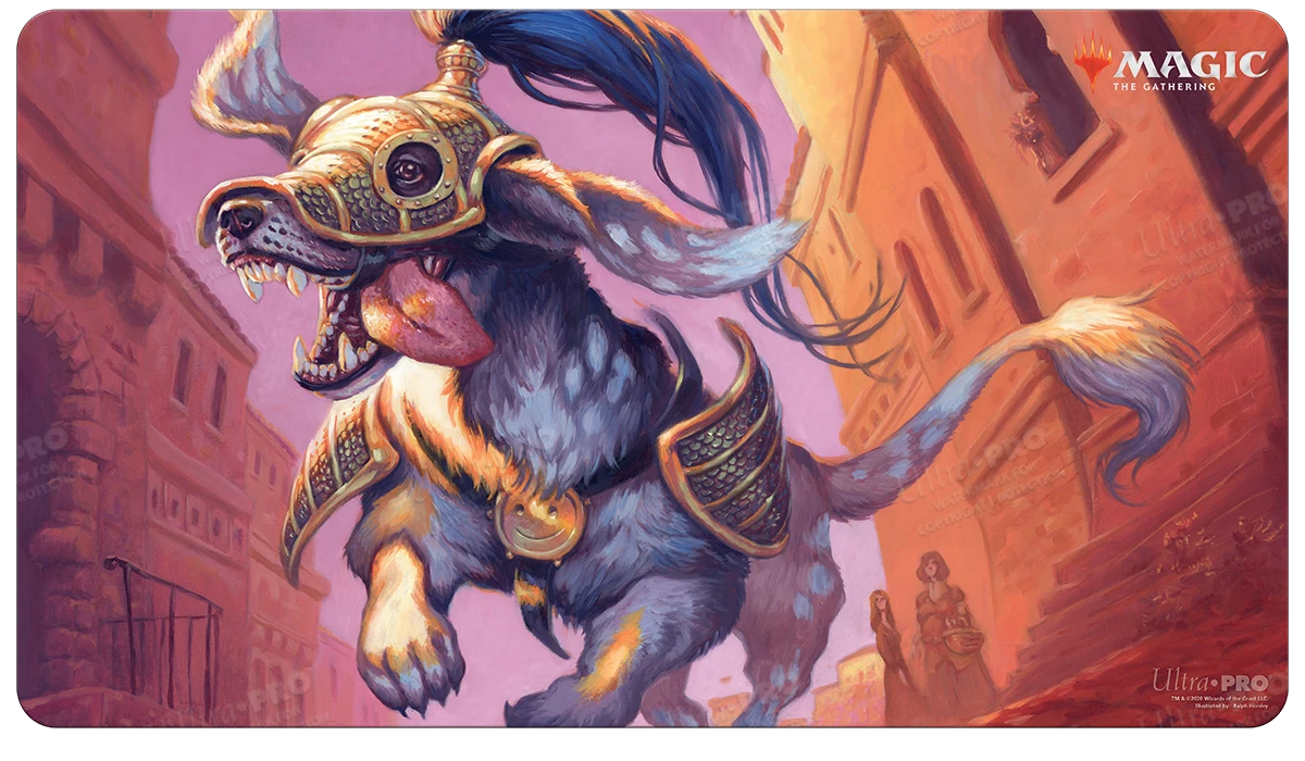 UP your game at your next tournament with these official Magic: The Gathering playmats showcasing highly detailed and vibrant artwork of “Selfless Savior” from Magic’s Core Set 2021 (M21.) Made in collaboration with the maker of the popular trading card game, each playmat is made with a premium fabric top to prevent damage to cards during gameplay for tabletop gamers. With dimensions of approximately 24″ X 13-1/2″, this playmat is also the perfect decorative oversized mouse pad for computer and laptop workstations. Non-slip rubber backing lets the playmat lay flat and prevents it from shifting during use.