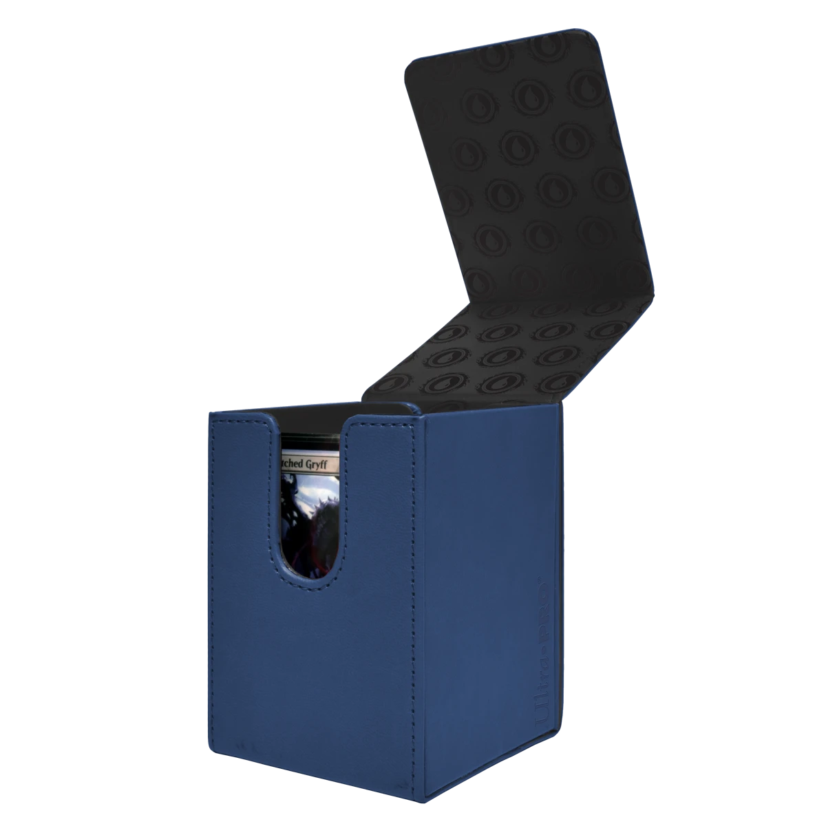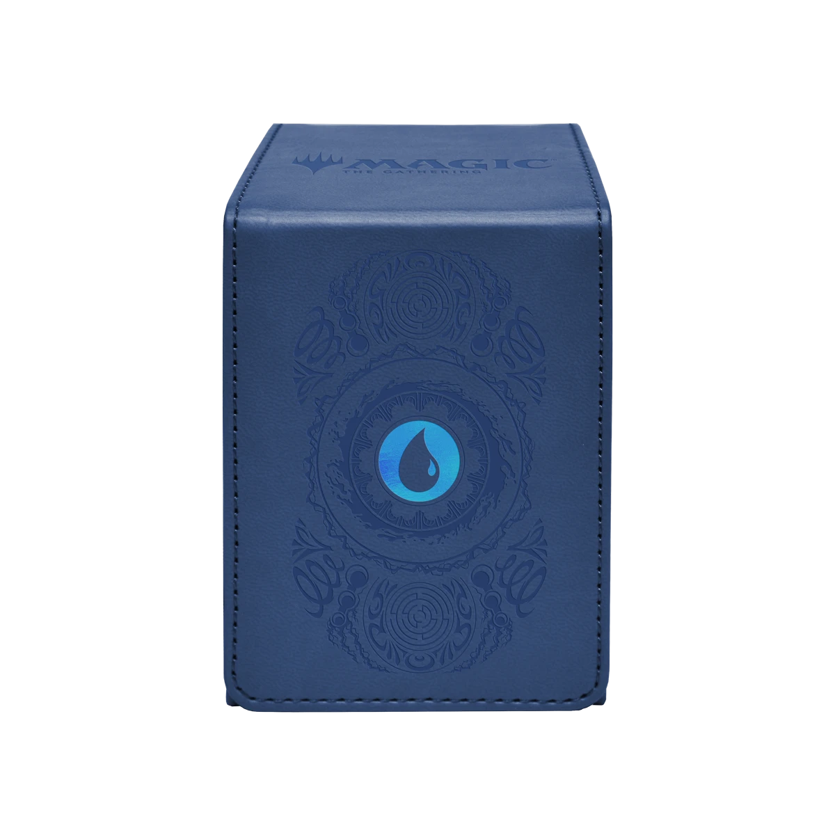 The Mana 7 Island Alcove Flip Deck Box® for Magic: The Gathering features a vibrant, full-color leatherette finish with a stylized debossed design and spot mirror foil accents. The strong magnetic closure provides secure storage while the dual thumb notches allow for easy access to your deck. This Deck Box® holds up to 100 standard size trading cards double-sleeved in Ultra PRO Deck Protector® sleeves.