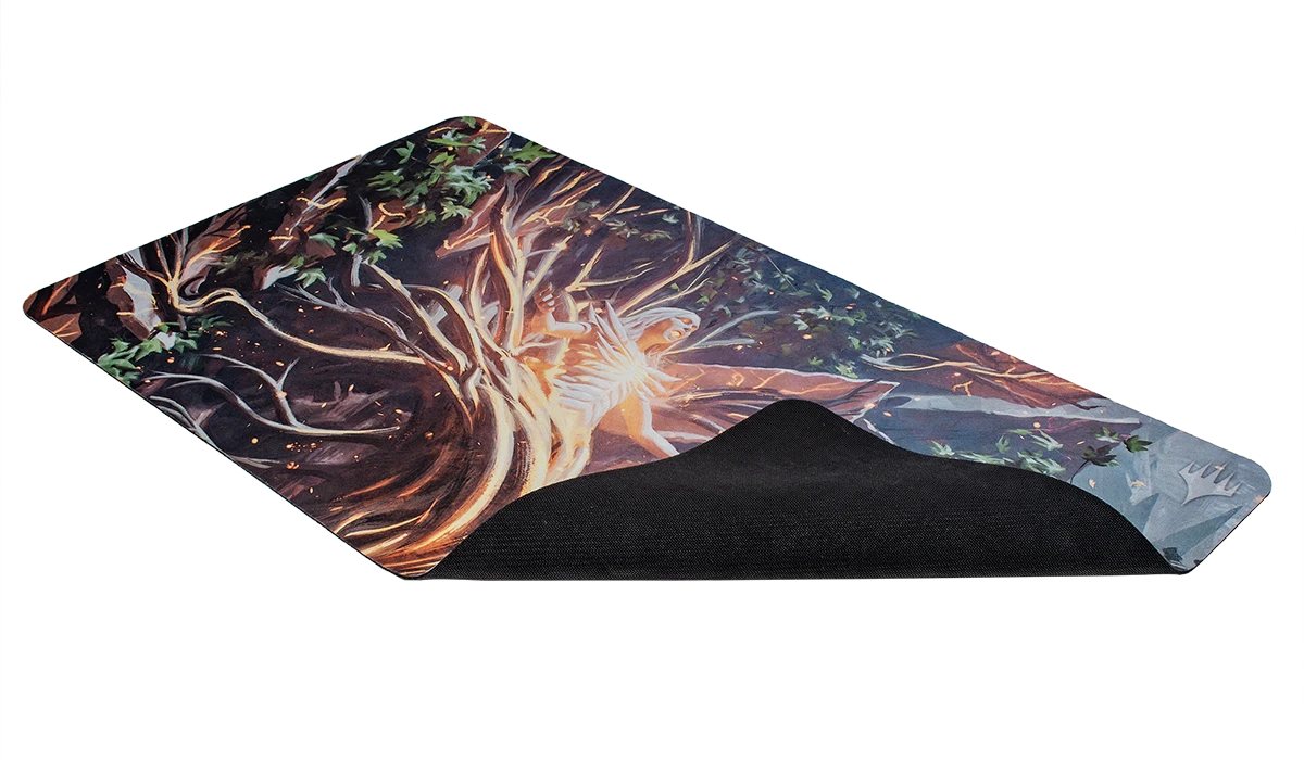 Playmats feature popular Magic: The Gathering artwork. Made with a soft fabric top to reduce damage to cards during play and a non-slip rubber backing to keep the playmat from shifting during use, playmats enhance the gameplay experience. With dimensions of approximately 24 in. x 13.5 in., a playmat also makes an excellent oversize mousepad for home or office.