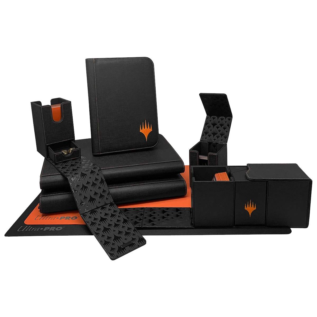 The Mythic Editions are Ultra PRO™’s most premium accessories for Magic: The Gathering. This Alcove Flip Deck Box features a black leatherette material with a mythic orange embroidered Planeswalker symbol and matching stitching. Store and protect up to 100 standard size trading cards double-sleeved in Ultra PRO Deck Protector® sleeves. This deck box is made with durable, high-quality materials and features a strong magnetic closure to securely store your deck, and dual thumb notches for easy access when you are ready to play.
