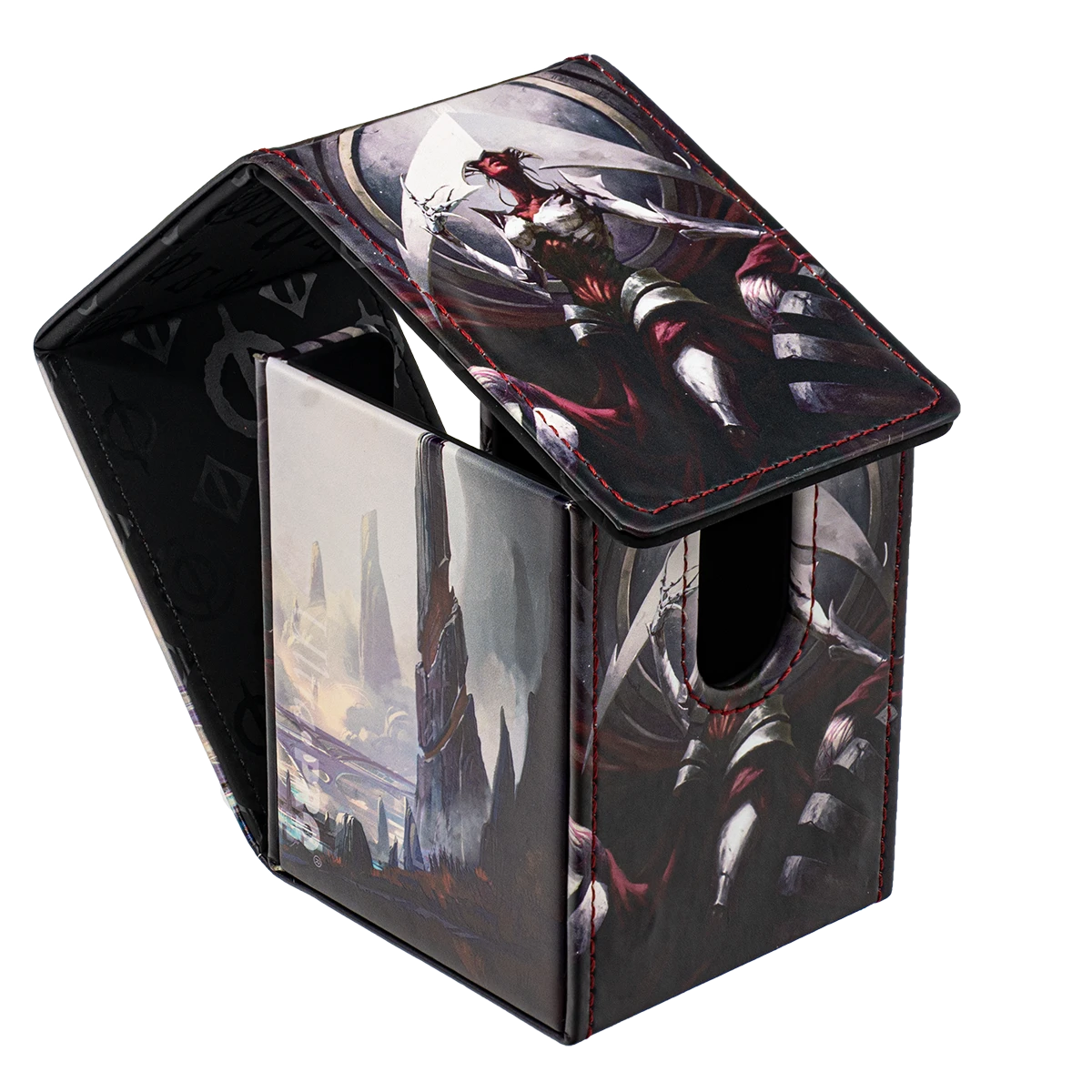 The Alcove Flip Deck Box® for Magic: The Gathering features a vibrant, full-color leatherette finish, strong magnetic closure, and dual thumb notches for easy access to your deck. This Deck Box holds up to 100 standard size trading cards double-sleeved in Ultra PRO Deck Protector® sleeves.