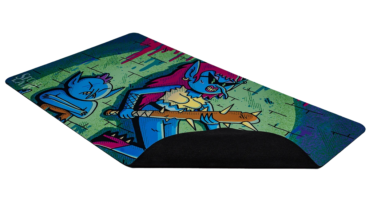 Playmats feature popular Magic: The Gathering artwork. Made with a soft fabric top to reduce damage to cards during play and a non-slip rubber backing to keep the playmat from shifting during use, playmats enhance the gameplay experience. With dimensions of approximately 24 in. x 13.5 in., a playmat also makes an excellent oversize mousepad for home or office.