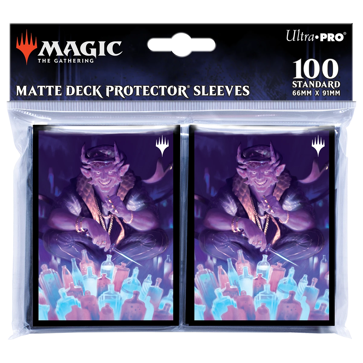 The 100ct Deck Protector® sleeves for Magic: The Gathering feature full-color artwork and are made with our proprietary ChromaFusion Technology™ to prevent peeling. Archival-safe polypropylene materials ensure you can sleeve your cards with confidence. Sized for standard size trading cards measuring 2.5 in. x 3.5 in. The matte finish on the front offers a glare-free, camera ready play experience, while the shiny back brings out the beautiful artwork!
