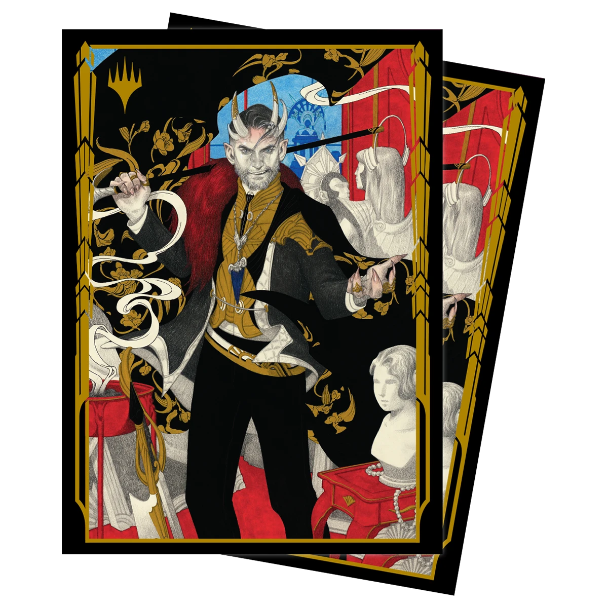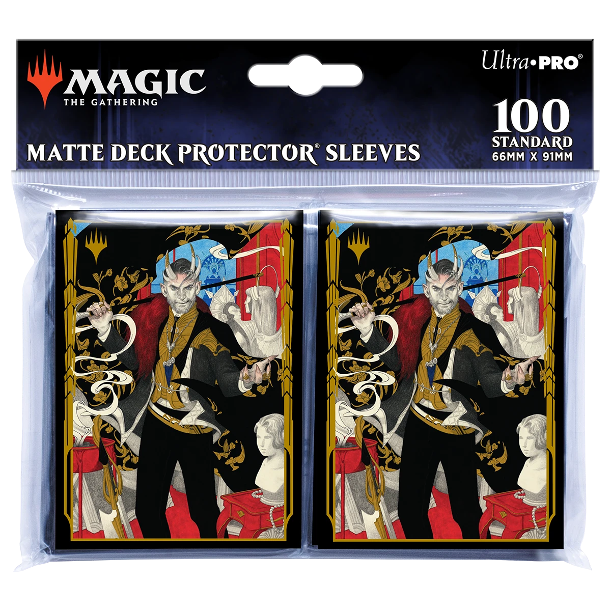 The 100ct Deck Protector® sleeves for Magic: The Gathering feature full-color Gilded Gold alternate artwork of Lord Xander, the Collector by Tran Nguyenand that is framed by a shimmering metallic ink Gilded Gold frame are made with our proprietary ChromaFusion technology to prevent peeling. Archival-safe polypropylene materials ensure you can sleeve your cards with confidence. Sized for standard size trading cards measuring 2.5 in. x 3.5 in. The matte finish offers a glare-free, camera ready play experience!