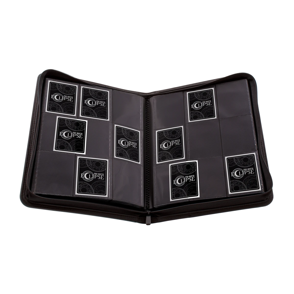 Zippered PRO-Binder with embossed middle black web material to give cards a classic framed look. Sideloading pocket design to prevent cards from easily falling out. Zipper holds the binder shut when not in use. All materials are made from archival-safe, acid-free non-PVC material. Holds 360 cards in Ultra Pro Deck Protector sleeves.