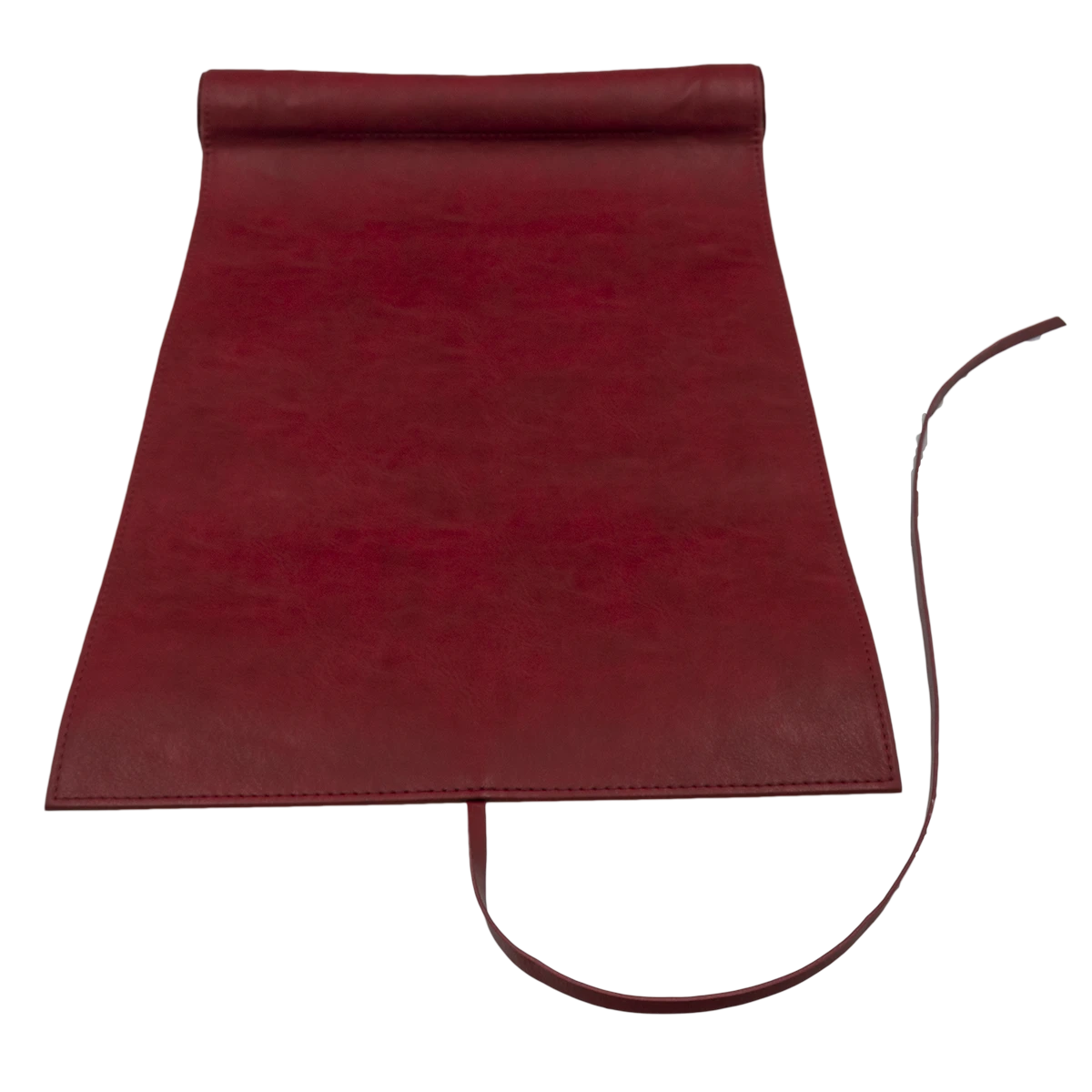 - Burgundy Red Leatherette exterior with cream-colored backing with D&D ampersands on each end of the scroll