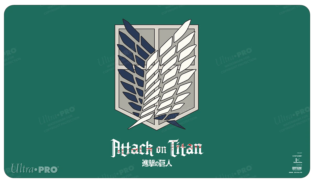 - Official Attack on Titan Playmat featuring the iconic Survey Corps logo!
